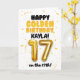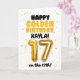 ¡Celebra que tu hijo cumple 17 años el día 17 con esta tarjeta de Feliz Cumpleaños Dorado! Diseñada con un tema dorado brillante y alegre, esta tarjeta presenta un diseño divertido y audaz con detalles de confeti y un gran número de globo dorado. ¡Personalízala con un nombre en la parte delantera y en el interior de la tarjeta para hacer que su cumpleaños dorado sea aún más especial!