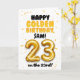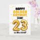 ¡Celebra cumplir 23 años el día 23 con esta tarjeta de Feliz Cumpleaños Dorado! Diseñada con un tema dorado brillante y alegre, esta tarjeta presenta un diseño divertido y audaz con detalles de confeti y un gran número de globo dorado. ¡Personalízala con un nombre en la parte delantera y en el interior de la tarjeta para hacer su cumpleaños dorado aún más especial!
