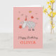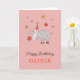 Esta tarjeta de cumpleaños feliz presenta un ilustracion personalizado de ovejas lindas y graciosas que usan gorra de cumpleaños, sosteniendo la flor roja y rodeadas de mariposas. ¡Gran tarjeta para el cumpleaños de los niños (chicas)! Puede personalizar fácilmente el texto (saludo y nombre) en la parte inferior de la tarjeta utilizando las herramientas en línea de Zazzle. Si necesitas ayuda para personalizar esta tarjeta, no dudes en contactarme vía Zazzle, por favor.