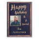 Feliz cumpleaños, foto de hijo para él La tarjeta personalizada es genial para darle a tu hijo que le haga saber que lo aprecias y que es especial para ti. Puede personalizar la tarjeta agregando la fotografía de su hijo y su información.