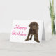 ¿Quién puede resistir la dulce cara de un perro cachorro de chocolate? Esta linda tarjeta de felicitación cuenta con un cachorro del Laboratorio de Chocolate Marrón parado sobre un fondo blanco crujiente. Está lista para ayudarte a enviar saludos de cumpleaños a tu familia y amigos.