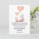 Una linda tarjeta de mamá de cumpleaños feliz de bebé que presenta zorros de mamá y bebé con globos.