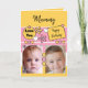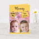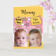 Personaliza esta tarjeta de felicitación de cumpleaños o Día de la Madre para mamá, con dos fotos y cambia el otro texto si lo prefieres. Diseñado en rosa, amarillo y negro con flores, corazones y puntos. 'te amo' 'feliz cumpleaños' 'eres genial' 'mejor mamá de todos los tiempos' Cambia y luego cambia de nombre para otra ocasión.