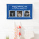 Añade las fotos de tu padre a este cartel azul de cumpleaños feliz con fotos personalizadas. Es divertido poner diferentes fotos de progresión de la edad