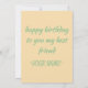 esta tarjeta calienta el corazón de un alma sensible, su tarjeta le dice su mensaje al receptor honrado cada vez que lo leen de nuevo. Detalles de la tarjeta Mensaje principal: Feliz cumpleaños mensaje interno: feliz cumpleaños a mi mejor amigo, puedes cambiarlo