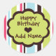 Personalizable Feliz cumpleaños Funky Stripe Pegatina Verde y Marrón