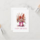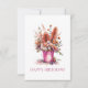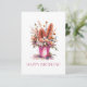 Envíe cálidos deseos con esta encantadora tarjeta de cumpleaños. El diseño cuenta con una deliciosa pila de cubos de flores rebosantes de vibrantes flores naranjas, rosas, rojas y violetas, que combinan clásicos favoritos de los huertos de cabaña con icónicas flores nativas australianas como los waratahs, las patas de canguro y las brotes de eucalipto. El ilustracion a mano, de acuarela y el alegre texto de "¡FELIZ CUMPLEAÑOS!" en la parte delantera lo convierten en una elección perfecta para todo aquel que ame el arte floral con un toque local australiano