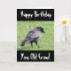 Feliz Cumpleaños Tarjeta de Cumpleaños del Anciano Insulto de Crow - Un cuervo negro en el pasto buscando deliciosos dulces. El cuervo estaba en el parque local caminando por el campo cuando tomé esta foto. Diseño de cuervos negros perfecto para Halloween.