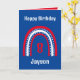 Tarjeta de cumpleaños arcoiris en blanco y azul rojo. Puede personalizarse haciendo clic en el símbolo del sistema "Personalizar".