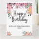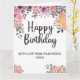 Feliz cumpleaños | Tarjeta de flores rosadas de or