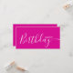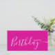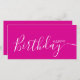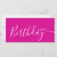 Esta moderna y elegante tarjeta plana presenta el texto blanco Happy Birthday en la parte delantera y en la parte trasera lo personaliza con tu nombre o apellido. El fondo es de color rosa caliente.