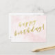 NewParkLane - Tarjeta postal elegante, con el deseo 'Feliz Cumpleaños' en tipografía de letra falsa de oro elegante, contra un fondo de acuarela rosado