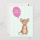NewParkLane - Tarjeta postal, con un lindo ratón del bosque en acuarela, con un globo rosa, con la cita: '¡Feliz Cumpleaños!', sobre un fondo rayado verde menta.