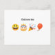¡Di lo que quieres en emojis! Envía una tarjeta postal personalizada de “feliz cumpleaños”. La tarjeta postal se puede personalizar con un nombre. El símbolo “@” delante del nombre sigue la convención de las redes sociales mientras que los emojis dicen “feliz cumpleaños”.