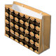 Esta bolsa de regalo presenta un diseño con las palabras "Feliz Cumpleaños y muchos S'mores" en una fuente de impresión más azucarada que muestra letras marrones con contorno bronceado que muestra un s'more estilo caricatura coronado con cinco velas de cumpleaños de diferentes colores en este tema y estilo de cumpleaños. Todas las bolsas de regalo están hechas con papel de alta calidad para una durabilidad extra y su elección de acabado mate o brillante disponible en 3 tamaños adicionales ideales para baby showers, bodas o aniversarios.