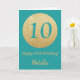 Feliz décimo cumpleaños, tarjeta Verde azulada y P