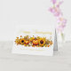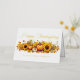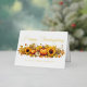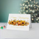 Esta antigua tarjeta de vacaciones doblada de una compañía a la antigua cuenta con un dibujo vintage de calabazas naranjas, hojas caídas y bonitos girasoles otoñales. Nostálgicas tarjetas Happy Thanksending con guión de Relieve metalizado dorado de tu nombre de negocio y mensaje profesional personalizado en la espalda para clientes y amigos.