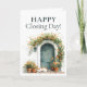 ¡Termina el viaje inmobiliario de tus clientes con una nota perfecta! Esta encantadora tarjeta de saludo cuenta con una delicada acuarela de una acogedora puerta con un gato echando una siesta a su lado. Es la manera perfecta de desearles un día de cierre sin estrés y una transición suave a su nuevo hogar (¡o el próximo capítulo!). Apreciarán el tacto atento y el recordatorio de que después de todo el papeleo, es el momento de relajarse y hacer nuevos recuerdos.