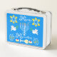 ¡Feliz Hanukkah! Celebrar Hanukkah este año con un hermoso diseño de vacaciones. Fondo azul marino con Menorah blanco y otros artículos de Hanukkah.