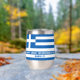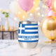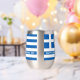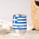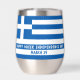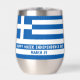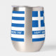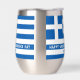 Celebrar el Día de la Independencia Griega con este sorprendente vaso de vino sin tallo de acero inoxidable el 25 de marzo, que presenta los icónicos colores azul y blanco de la bandera griega y saludos de celebración con una fuente de inspiración griega. ¡Yamas! El reverso muestra un diseño idéntico. Diseño © W.H. Sim. Ver más en zazzle.com/expressionsoccasions