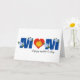 Aquí hay un diseño hecho con el tipo. Comenzando y terminando con la "M", se utiliza un tipo de letra de gran negrita, junto con delicadas flores azules. En el centro, la "O" es un corazón rojo que tiene un pato madre amarillo y su bebé. El texto de la parte delantera se puede personalizar. En el interior, puede agregar su propio texto.