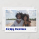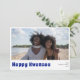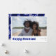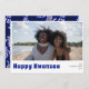 Feliz tarjeta fotográfica de feriado de Kwanzaa. Diseño minimalista con una sola foto. Parte posterior de las cartas, patrón rústico de hojas en arena azul, negra y suave.