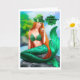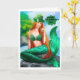 Sirena irlandesa con cabello cobrizo largo y cola verde, parte superior y sombrero sosteniendo trébol