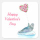 Un dulce pegatina El día de San Valentín con un lindo sello sosteniendo un globo de corazón floral. Esto se vería divertido en una bolsa de regalo o sobre.