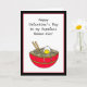 Tarjeta romántica linda para una pareja en el Día de San Valentín, "Te amo montones". Tazón lindo de fideos Ramen con palillos y un huevo cocido para tu amante de Ramen.