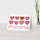 La tarjeta el día de San Valentín presenta un original ilustracion de marca de una fila de galletas azucaradas rosadas y rojas con forma de corazón, con HAPPY VALENTINE'S DAY en una fuente divertida.