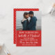 El el día de San Valentín es un día perfecto para compartir sus felices noticias. Deséenles Feliz Día de San Valentín y pídanles que guarden su cita. La foto de tu pareja favorita aparece en la parte superior de la tarjeta roja. Luego sigue tu Feliz Día de San Valentín y la solicitud de la fecha. La parte trasera de la invitación muestra pequeños corazones micro blancos en rojo.