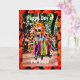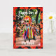Un esqueleto atemorizante vestido con coloridas cintas marchan en el desfile del Día de los Muertos. La escena del desfile está bordeada de marigoles, una flor tradicional del Día de los Muertos. Familiares, amigos, vecinos y compañeros de trabajo encontrarán esta tarjeta de diversión. Compra a través de la descarga Instant de Zazzle para imprimir varias invitaciones, etc. Dile a alguien que tenga un "Feliz Día de los Muertos".