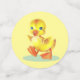 Feliz patito con oro como confeti en una mesa Fiesta amarilla. Texto listo para ser personalizado.