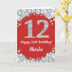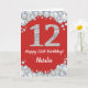 Feliz 12º cumpleaños, tarjeta de Purpurina roja y plateada con nombre personalizado. Para una mayor personalización, haga clic en el botón "Personalizar" y utilice nuestra herramienta de diseño para modificar esta plantilla.
