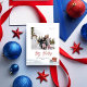 Niebla acuarela de invierno y carta de vacaciones Felices Fiestas con tipografía burdeos