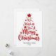 Le deseamos una Feliz Navidad con un tipo de letra estilo script en una tarjeta de Navidades blancos con forma de árbol. Puede cambiar el color del fondo y también del gráfico principal, así como el nombre de la familia, el texto del año.