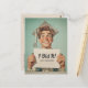 Un alegre graduado de los años 50 con gorra y vestido sostiene una invitación, lista para texto o diseño personalizado, ambientada con un fondo brillante.
