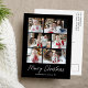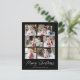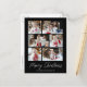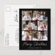 Postal vacacional moderna con 6 fotos de tu equipo en un diseño de collage. "Feliz Navidad" se muestra en un guión blanco escrito a mano con el nombre de tu familia y el año que se muestra debajo en un fondo negro. La tarjeta postal multifoto de vacaciones se revierte para mostrar su dirección de retorno y mensaje personalizado en letras negras.