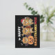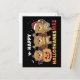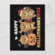 Feliz Hallothanksmas - feliz Halloween, Día de Acción de Gracias y Navidad. El castor está disfrazado de murciélago en Halloween. Con una tarta para el Día de Acción de Gracias. decorado con el sombrero de Santa en Navidad.