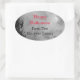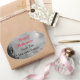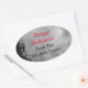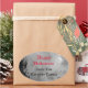 Una pegatina personalizada de Feliz Halloween en letras rojas de estilo gótico y letras rústicas negras contra un cielo de Halloween con árboles brumosos, cuervos góticos y una luna llena nublada en negro, blanco y gris.