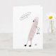 Tarjeta de felicitación vertical de 5x7 – Feliz Aullido de Salchicha - Una salchicha se reclina y deja escapar un aullido largo y fuerte. ¡Desea a alguien un feliz Samhain enviando una pequeña salchicha divertida teniendo un buen aullido! El dibujo original está coloreado a lápiz sobre papel, escaneado y colocado en la tarjeta.