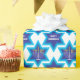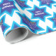 Gran patrón para envolver tus regalos de Hanukkah. Estrella blanca de David sobre fondo azul cielo.