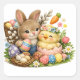 Celebra la Pascua con esta adorable hoja de pegatinas que presenta un conejito y un pollito rodeados de huevos coloridos, flores y elementos primaverales. Perfecto para decorar bolsas de regalo, favores de fiesta, tarjetas de felicitación o manualidades. Estas pegatinas cuadradas alegres aportan un toque festivo a cualquier celebración de Pascua y son ideales para niños y adultos