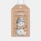 Feliz hombre de nieve con etiqueta de regalo de Na