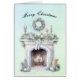 Una hermosa imagen de un hogar ardiente de incendios calentará tu corazón. El texto frontal es "Feliz Navidad" en negro. El verso interior es "Que las simples alegrías de los Navidades abran tu corazón, llenen tu hogar y duren una vida".