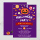 Esta alegre invitación de Halloween está llena de calabazas sonrientes y dulces - ¡perfecto para la espeluznante celebración de tu hijo! (Obra de arte generada por IA)