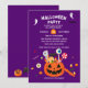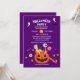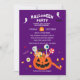 Esta alegre invitación de Halloween está llena de calabazas sonrientes y dulces - ¡perfecto para la espeluznante celebración de tu hijo! (Obra de arte generada por IA)