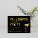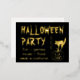 Invitación de HALLOWEEN PARTY con gato y jack-o-lantern. Se pueden personalizar las 3 líneas de texto de la parte inferior izquierda.