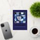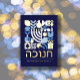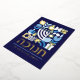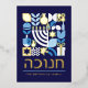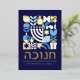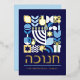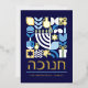 Janucá / Janucá Azul Blanco y elegante con lámina de oro real. Tarjeta moderna con patrón geométrico con Menorá, Trompo, Donas, Estrellas y aceite de oliva... Símbolos hebreos y judíos de Janucá + Espacio para agregar su texto personalizado en el frente y reverso. Felicitaciones de Janucá. En hebreo en la parte frontal dice "Janucá". Esta apariencia lujosa y hermosa es una excelente manera de desear a amigos, familiares y clientes una muy Feliz Janucá.