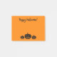Feliz naranja de Halloween notas Post-it® con tallado de cabeza de calabaza. Haz tus propias notas pegajosas para las vacaciones. Diseño divertido con plantilla de tipografía de guión y jack o linterna. Ideal para profesores de escuela, niños, hogar, oficina, familia, fiesta y más.